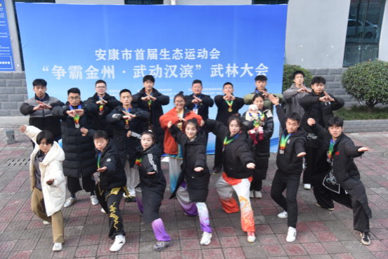 11月25日-26日,安康市首届生态运动会“争霸金州 武动汉滨”武林大会在安康市体育中心篮球馆成功举办,我校武术队参加了本次比赛,获得了1枚金牌、12枚银牌、11枚铜牌、集体项目第一名、团体总分三等奖的好成绩。