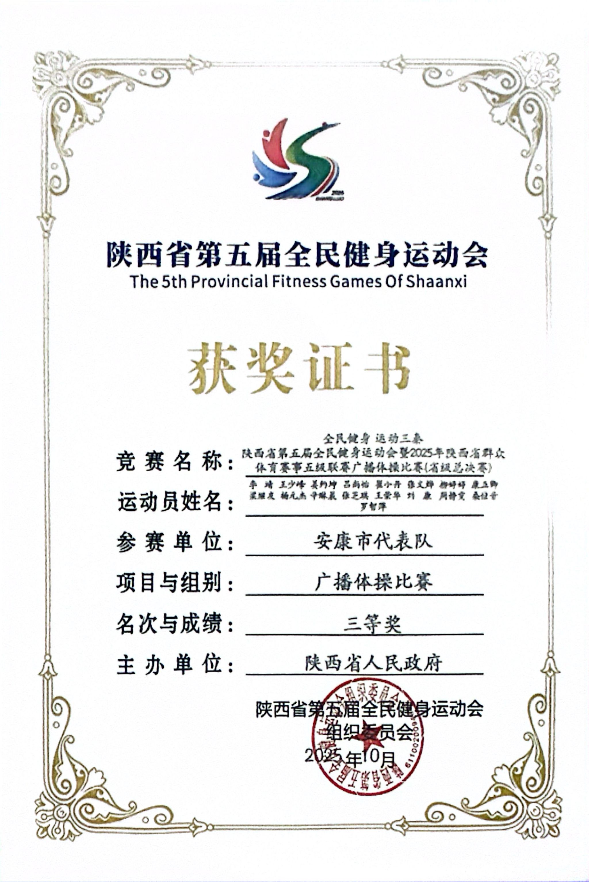 我校广播体操队在陕西省第五届全民健身运动会中斩获佳绩