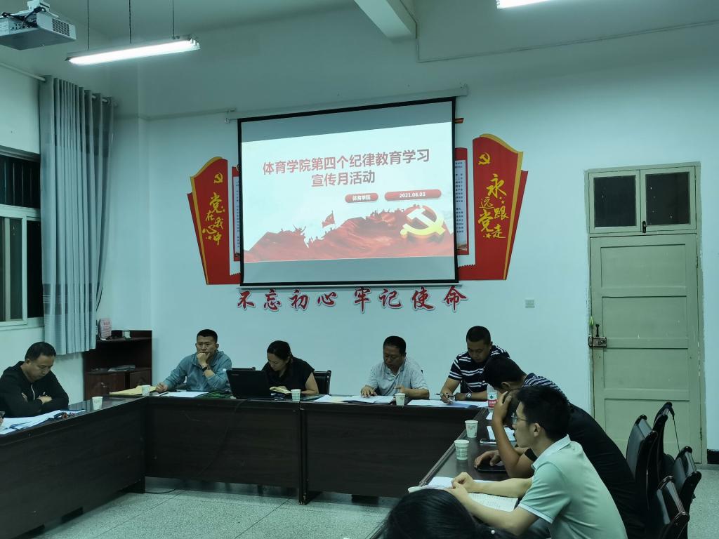 2021年6月3日正规滚球app平台官网召开全体教职工大会,安排部署第四个纪律教育学习宣传月活动。