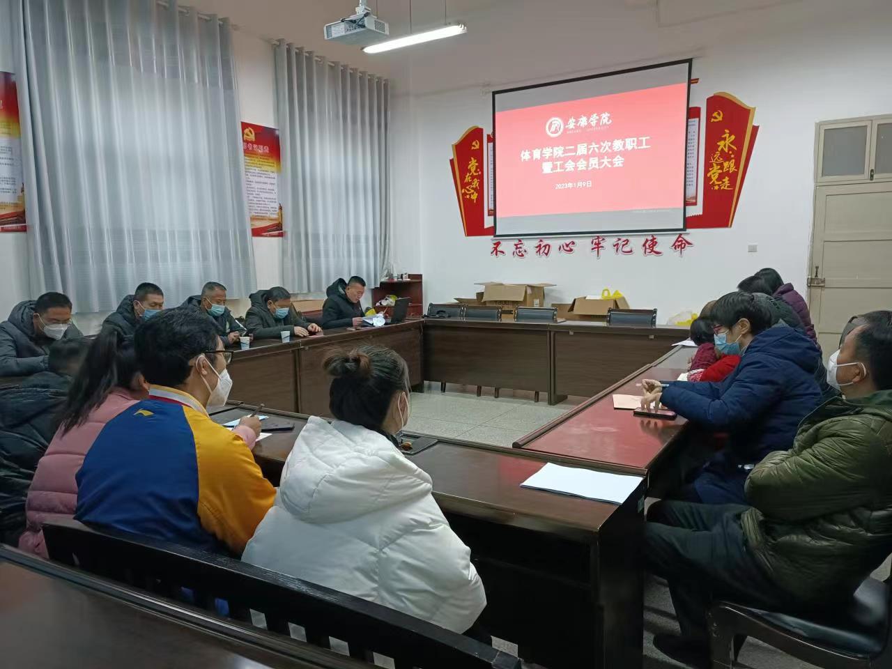 2023年1月9日下午,正规滚球app平台官网在体育馆一楼会议室召开二届六次教职工暨工会会员大会,正规滚球app平台官网27名教职工参加了本次大会,大会由正规滚球app平台官网党总支书记高立平同志大会在庄严的国歌声中拉开序幕。