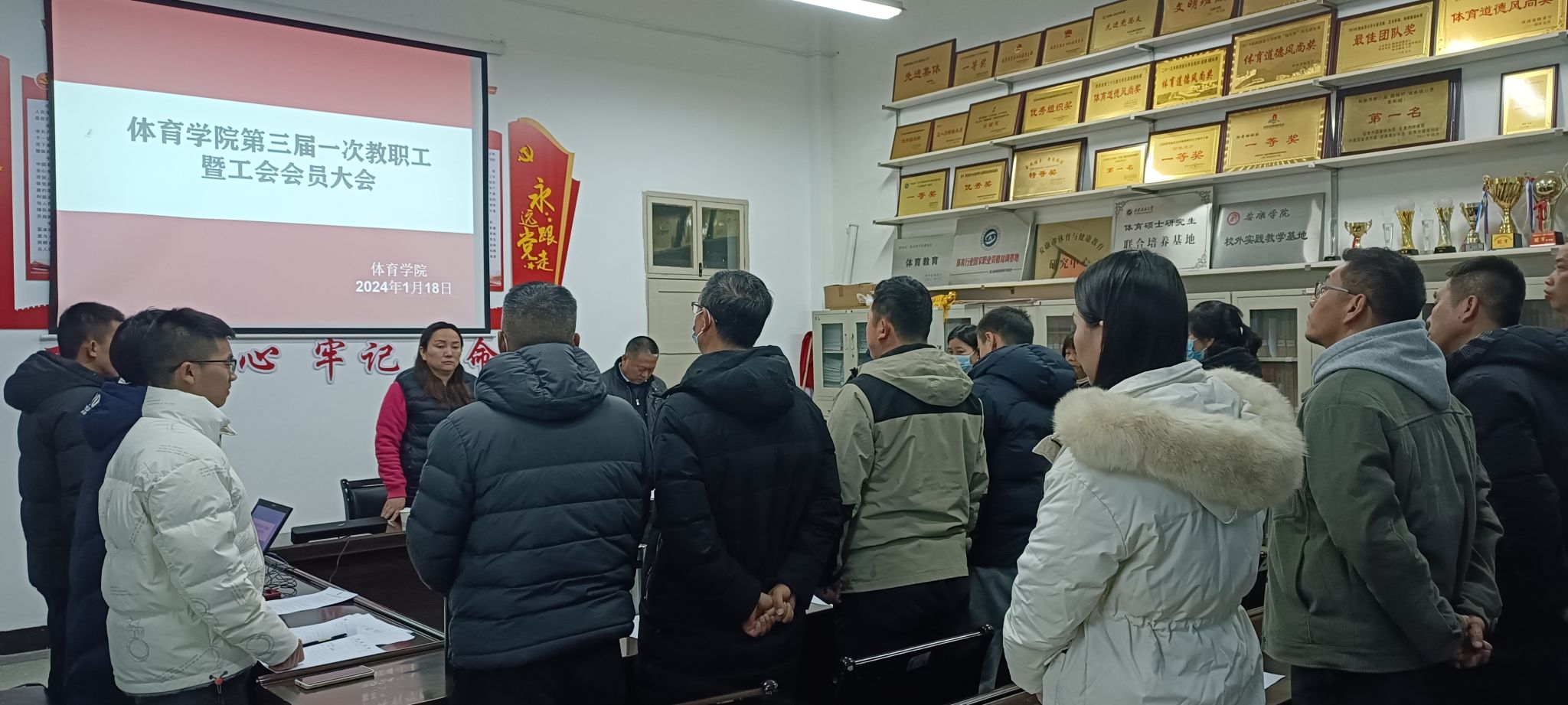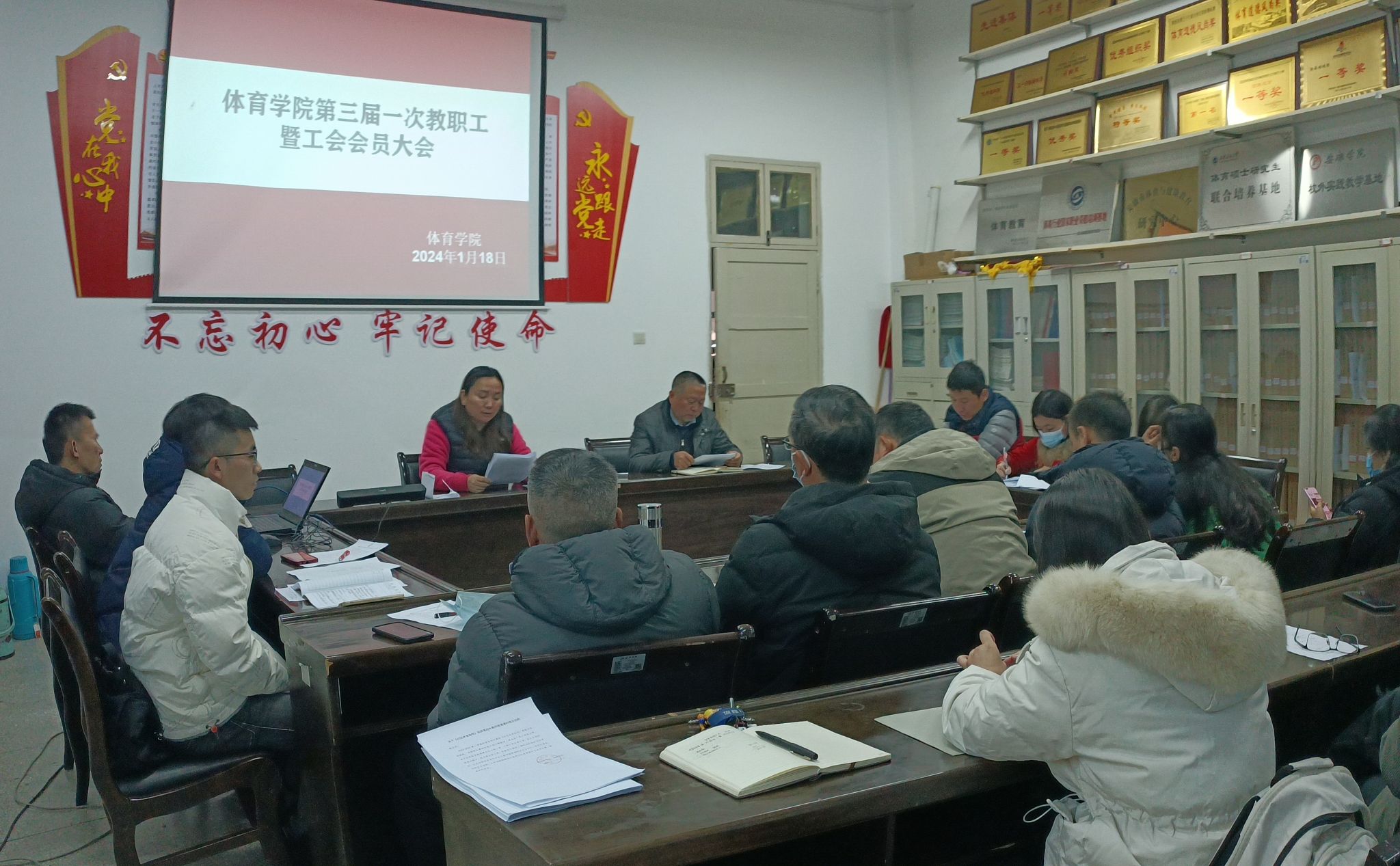 1月18日上午,工会正规滚球app平台官网分会在体育馆一楼会议室召开三届一次教职工暨工会会员大会,正规滚球app平台官网27名教职工参加了本次大会,大会由工会正规滚球app平台官网分会主席马玉琴主持。