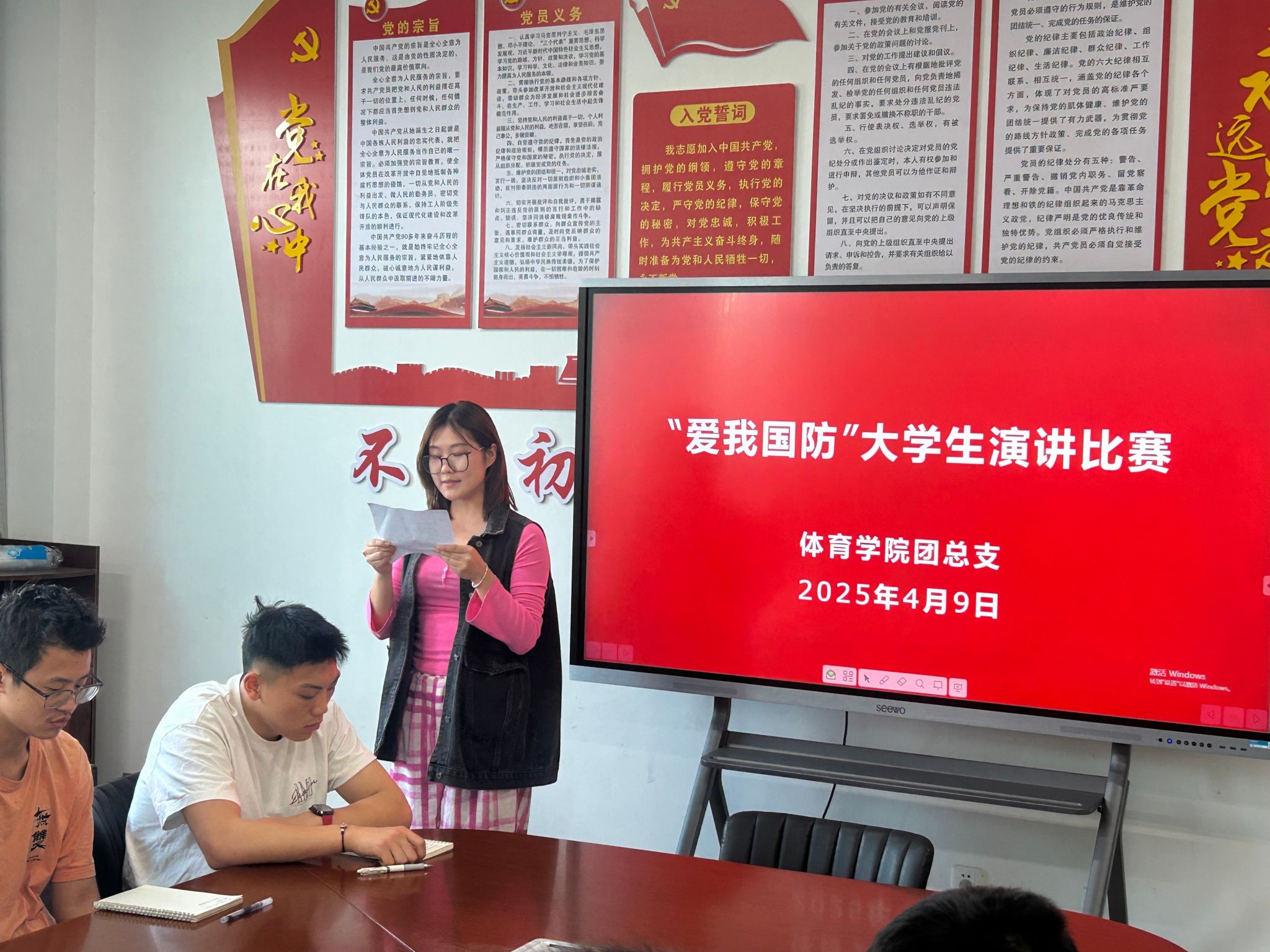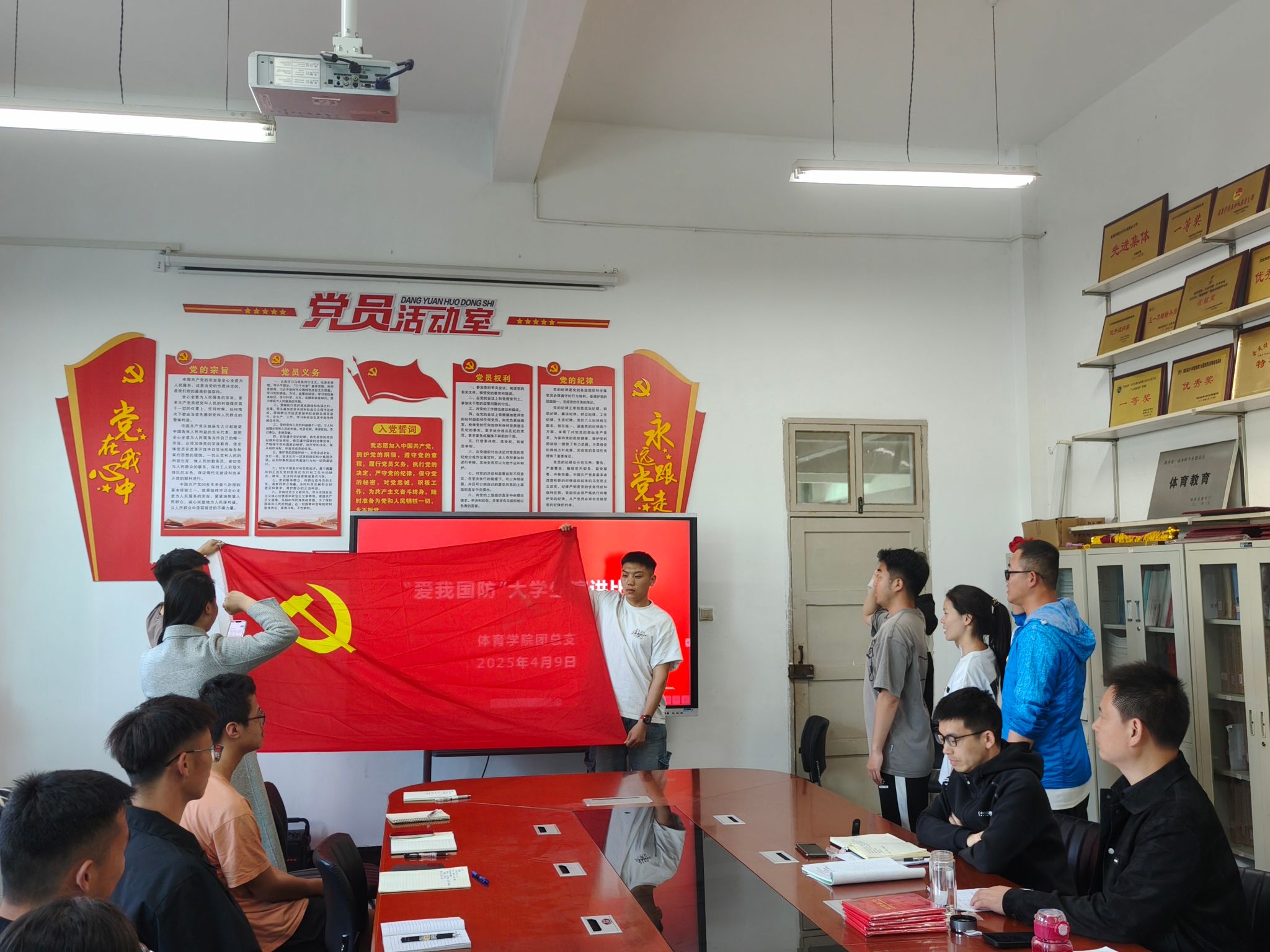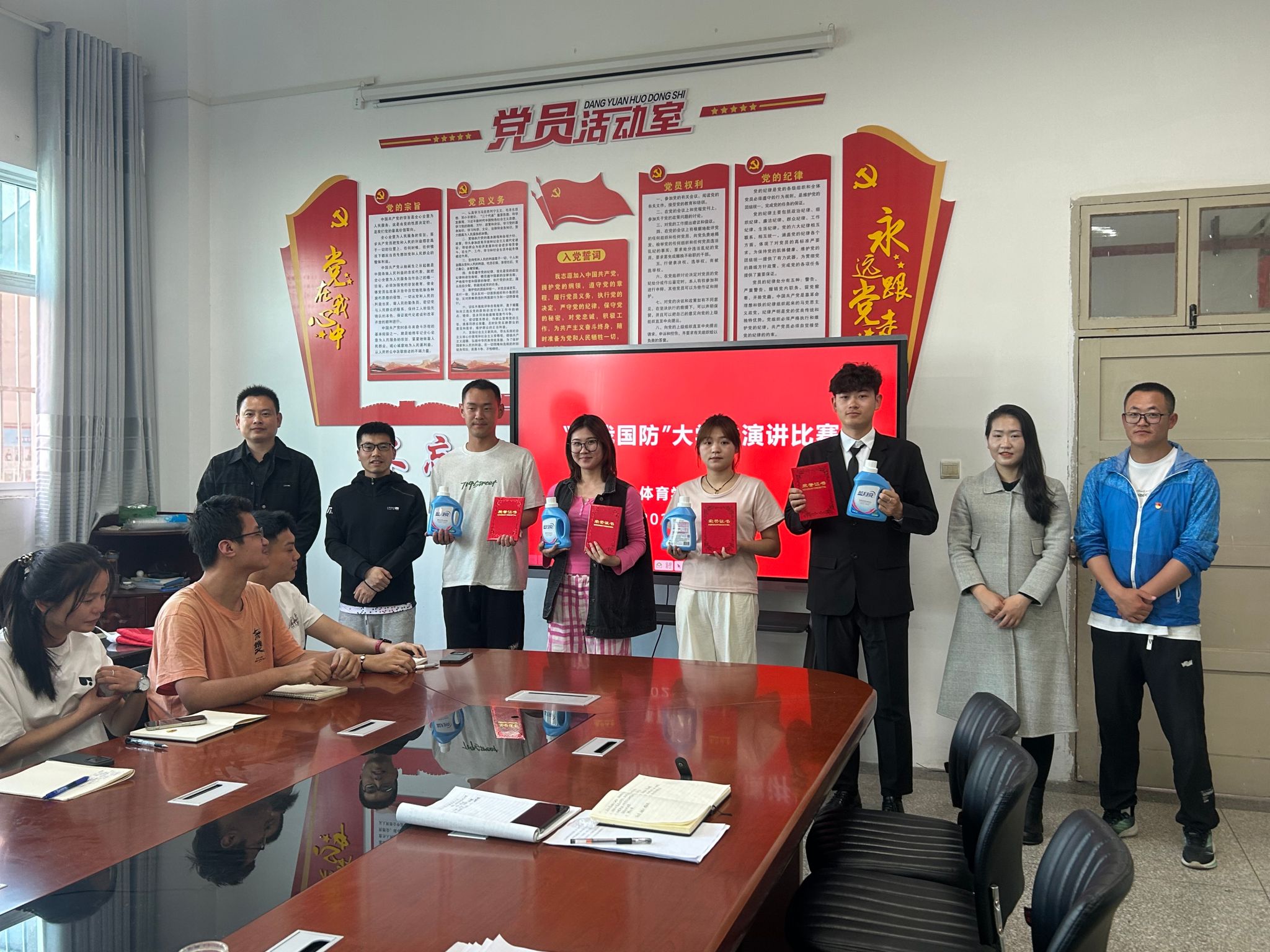 据悉,演讲比赛结束后,学生支部向全体党员传达了学校《关于在全校开展深入贯彻中央八项规定精神学习教育的实施方案》精神,组织学习了《什么是中央八项规定》《什么是中央八项规定精神》,观看了相关教育视频。最后,在宣传委员康梦瑶老师的带领下,新接收的党员同志面对党旗,庄严宣誓,活动在热烈的氛围中圆满结束。