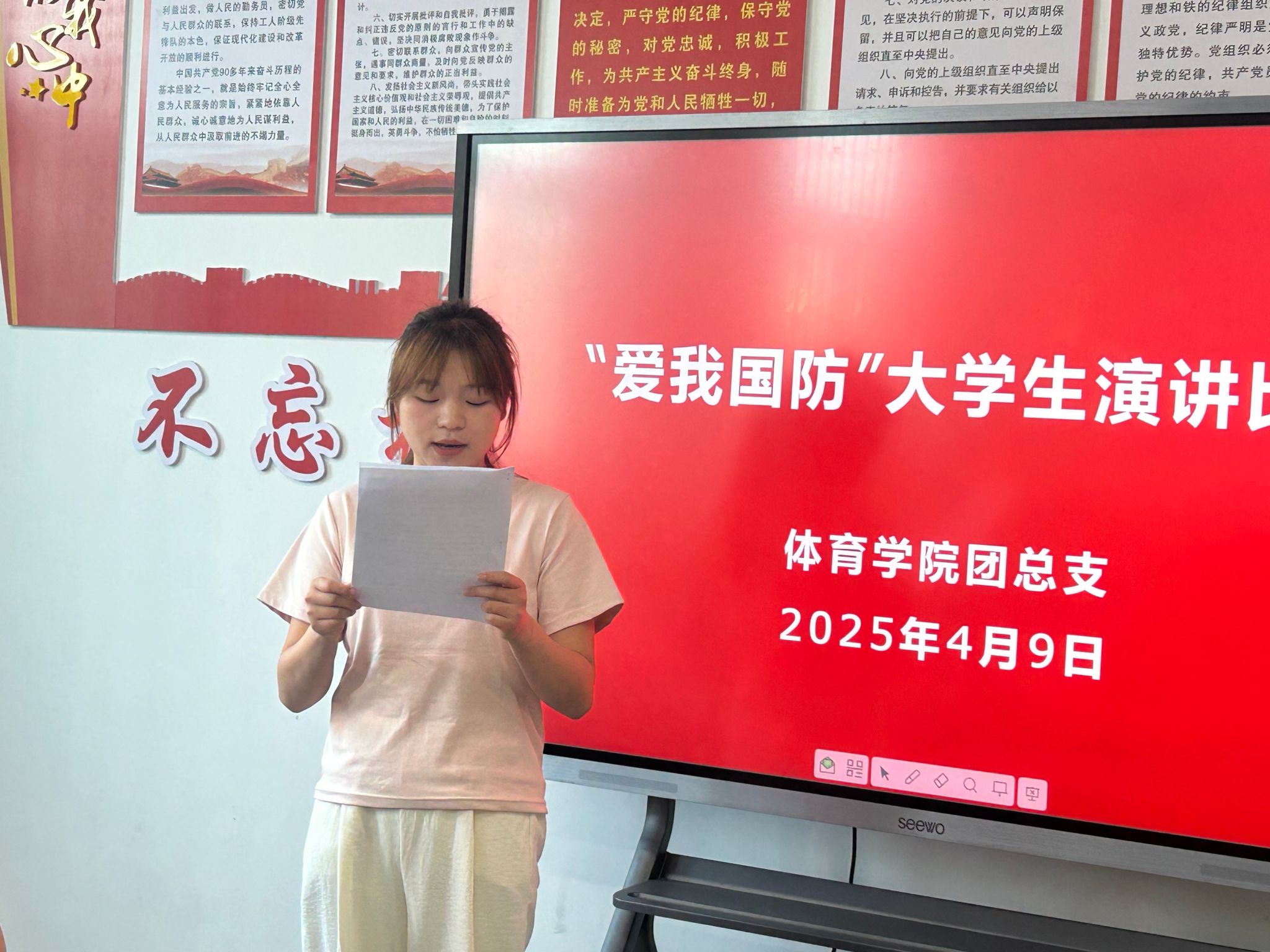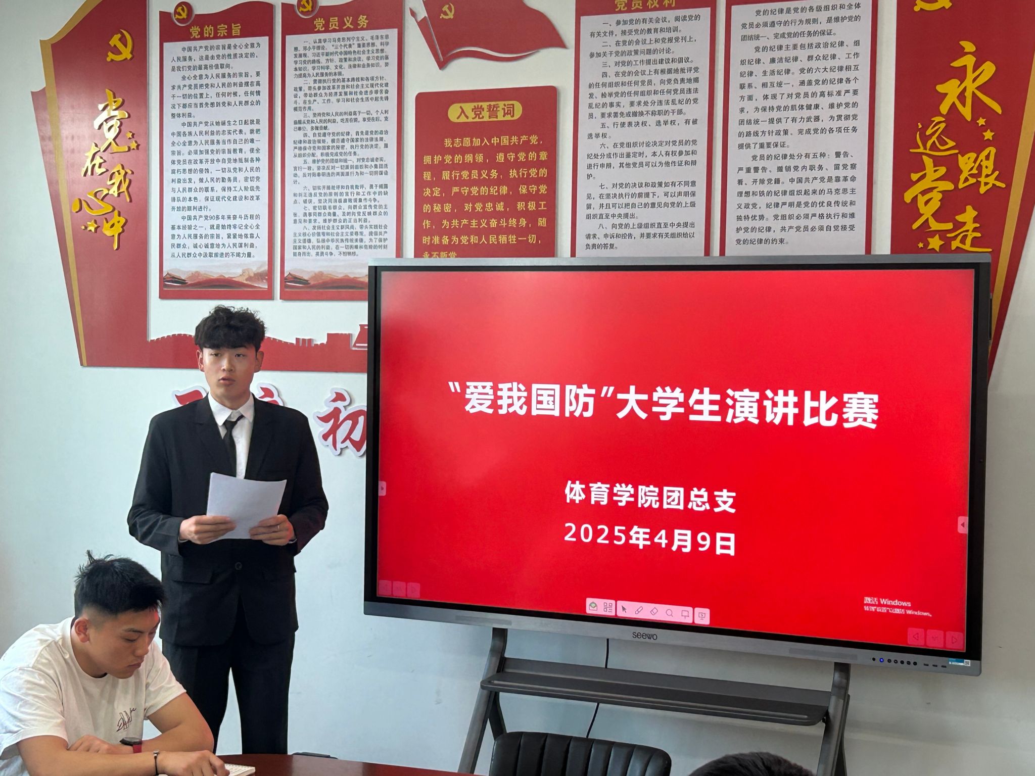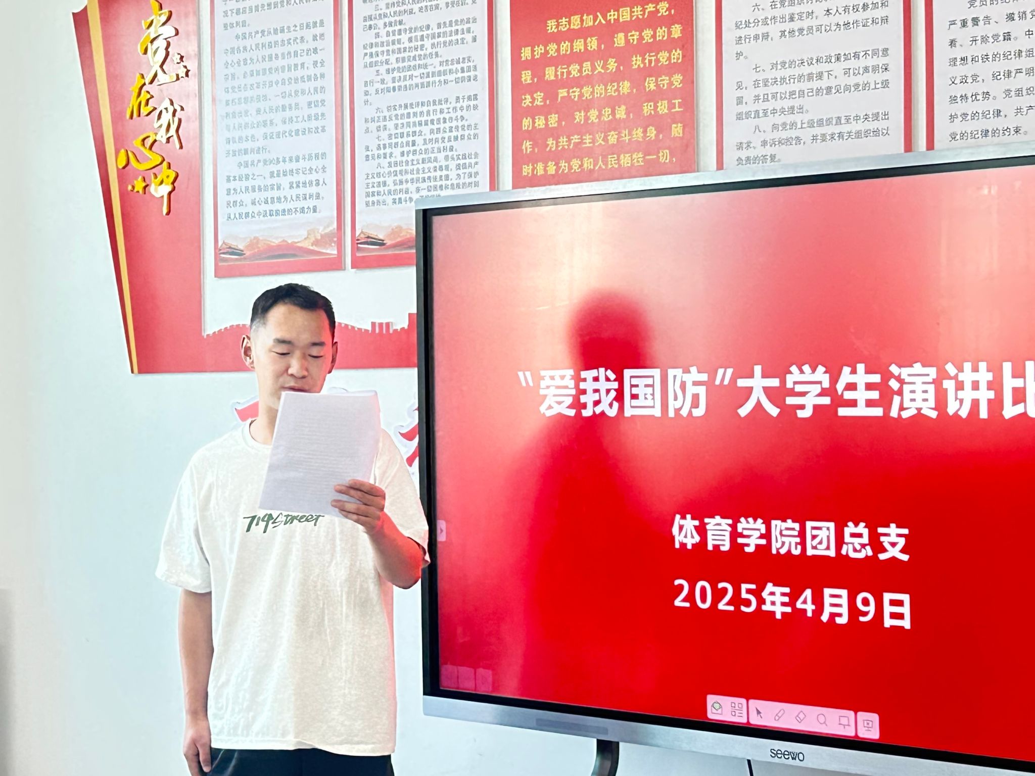 青春热血铸军魂,国防强音振人心。为深入贯彻落实习近平总书记关于加强全民国防教育的重要指示精神,充分发挥党建引领作用,推动党团共建深度融合,4月9日,正规滚球app平台官网学生党支部、团总支成功举办“爱我国防” 主题演讲比赛。进入决赛的4名选手同台竞技,以铿锵话语诠释新时代青年的国防担当,为在场师生带来一场震撼心灵的精神洗礼。