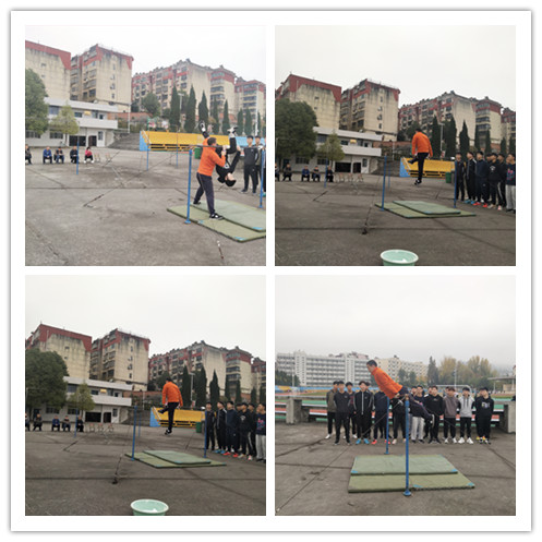 观摩课上,王老师首先组织学生利用队列队形组织变换的基本动作口令作为本次课准备活动,冬季室外教学气温较低,王老师又组织学生进行了专项准备活动,确保了学生的充分热身,有效的避免运动损伤的发生。本节课的教学内容是单杠,教学转入基本部分后,王老师重点让学生学习、体会和掌握单杠教学中的保护与帮助的方法、要领。王老师通过规范的动作示范和精炼的语言讲解,通过复习使学生巩固提高了单杠单腿蹬地翻上成支撑、单腿摆越成骑撑、单腿摆越转体180度成支撑、单腿摆越成骑撑等已学动作,继而学习了后倒挂膝上、单腿越杠转体90度挺身下两个新授动作,及新授动作的保护与帮助,在提高学生动作技能的同时,也培养了学生体操教学的能力与方法,激发了学生学习的兴趣,达到了增长知识、提高技能的教学目标。教学过程规范完整,贯穿了教学改革的新理念,教学方法新颖,辅助练习得当,课堂气氛活跃,取得了良好的教学效果