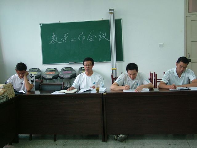 9月7日下午4:30,体育系在体育馆一楼会议室召开了新学期教学工作会议,主管教学副主任鲁宗成、办公室主任黎远军、公共体育教研室主任吕仙利、技能教研室主任王培刚、理论教研室主任陈治强、教学秘书易红君参加了会议。会议由鲁宗成主持。