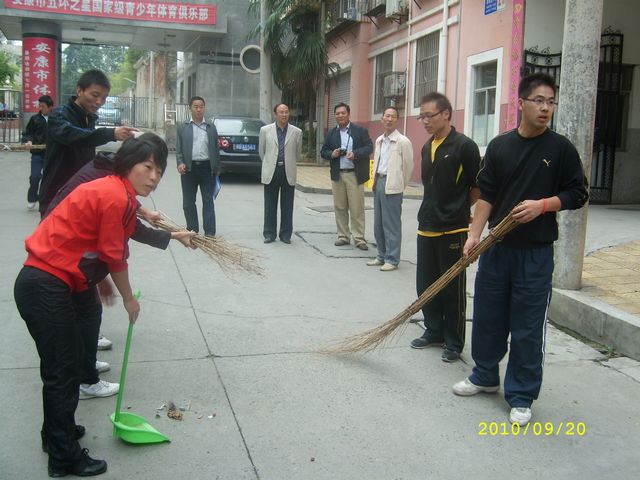 按照学院党委“关于印发《安康学院迎接省级卫生城市验收工作方案》的通知”精神,在学工部和体育系党总支的统一安排下,2010年9月30日上午,体育系辅导员梁鸿带领2007级学生党员、预备党员和入党积极分子共21人参加了“迎国庆”环境卫生清扫活动。