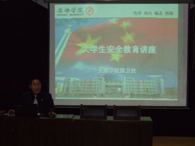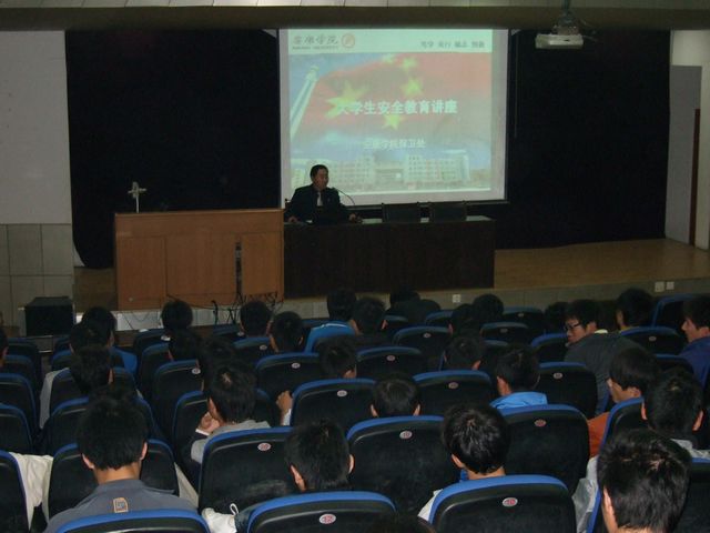 11月8日晚7:30-10:00,滚球官网保卫处副处长王开忠老师在一号教学楼六楼报告厅为体育系和化学化工系2010级全体新生做了题为“大学生安全教育”的专题讲座。