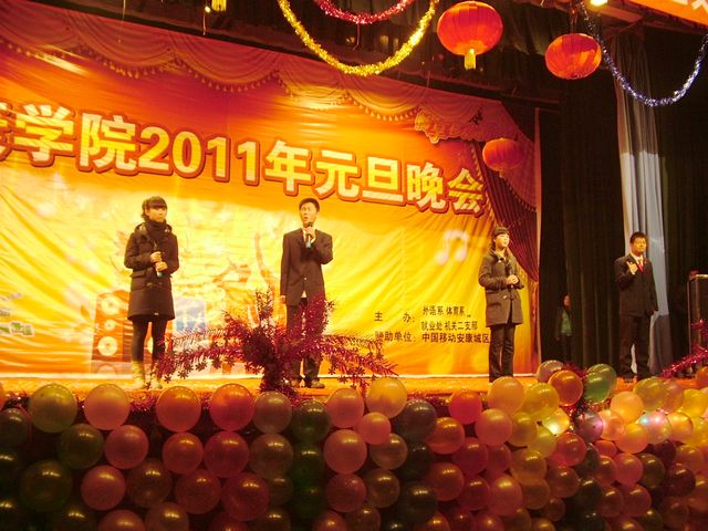 12月22日晚,由体育系、外语系、就业处、机关二支部联合举办的2011年元旦文艺晚会在东校区大礼堂隆重举行。院党委副书记胡鸿晓教授参加了晚会并发表了热情洋溢的讲话,向全体师生致以新年祝贺。组织部长胡波、学工部长郑树青、院工会专职副主席苏汉青及各部门党政领导和师生员工参加了晚会。