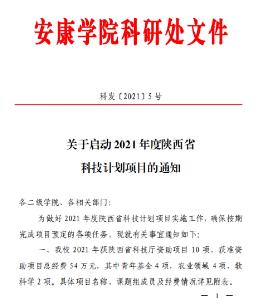 近日,陕西省科技厅公布了2021年立项文件(陕科发[2021]2号),正规滚球app平台官网获批1项一般项目(青年)-----《富硒绿茶影响大鼠线粒体氧化应激的机制》,项目编号:2021JQ-834。