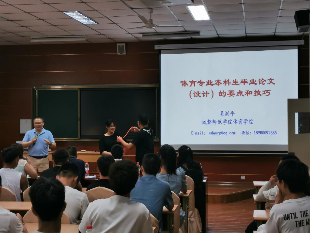 为提高滚球官网学生毕业论文撰写技能,6月11日下午14:30,成都师范学院正规滚球app平台官网院长吴润平教授来滚球官网做了以“体育专业大学生毕业论文(设计)的要点和技巧”为主题的学术讲座,正规滚球app平台官网全体18级、19级学生参加了本次报告会,报告会由学院党总支书记高立平主持。
