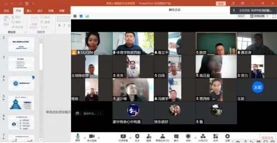 4月13日下午,正规滚球app平台官网实验教学中心(教研室)组织课改沙龙活动。本次教研活动围绕课程思政教学设计展开,实验教学中心全体老师参与了本次教研活动。通过研讨,大家一致认为,体育教育专业课程思政元素的凝练,需要紧密结合专业特点,更加细致、详细的学习与总结。与会老师一致认为,本学期的教研活动应重点围绕课程思政元素凝练开展,切实做好课程思政示范课程的打造。