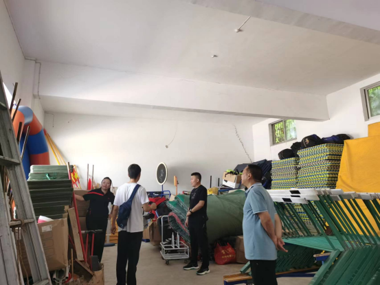 8月2日上午正规滚球app平台官网院长吕仙利、党支部书记高立平、副院长郭西魁成立临时安全检查小组,对滚球官网器材室的防火、防潮、安全用电等以及室内、室外体育设施进行安全检查。
