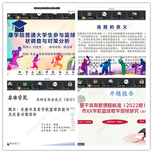 本次开题答辩由于部分教师在境外学习,没办法参加现场答辩,为保障开题答辩工作的顺利开展,经正规滚球app平台官网研究决定,部分答辩组采用线上、线下结合的方式进行了开题答辩。从本次开题答辩结果来看,学生论文的选题方向全部符合体育教育专业培养要求,选题也体现了一定的创新特点。