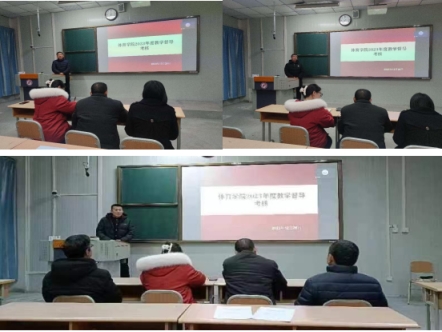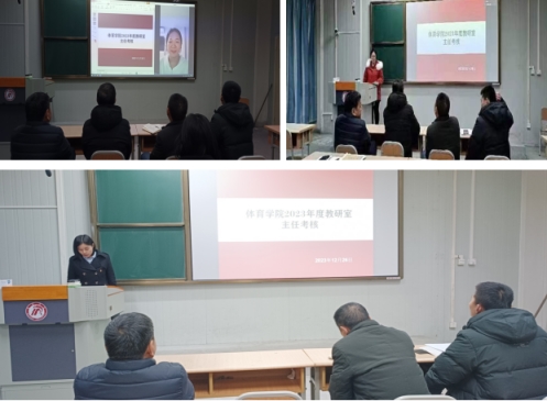 正规滚球app平台官网领导班子高度重视考核工作,成立了考核小组,制定了考核方案,在本次专题考核会上分三个批次进行考核。首先,对正规滚球app平台官网课程群负责人进行了考核,球类课程群负责人崔晓宇、操舞类课程群负责人陈治强、运动人体科学课程群负责人刘芹和学校体育学课程群负责人赵娇艳分别进行了年度总结汇报,考核组通过听取汇报、座谈和查阅工作记录的方式进行考核,并针对本年度工作中存在的不足对三位课程群负责人进行了现场反馈,并提出了下一步工作建议。