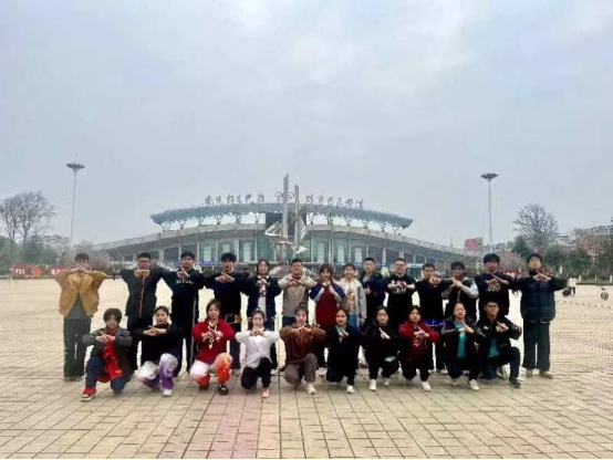 我校武术队专门为本次表演编排了一套武术动作,集南拳、长拳、刀术、剑术为一体,节目编排新颖独特,队员动作行云流水、气势恢宏,受到现场观众的热烈欢迎。