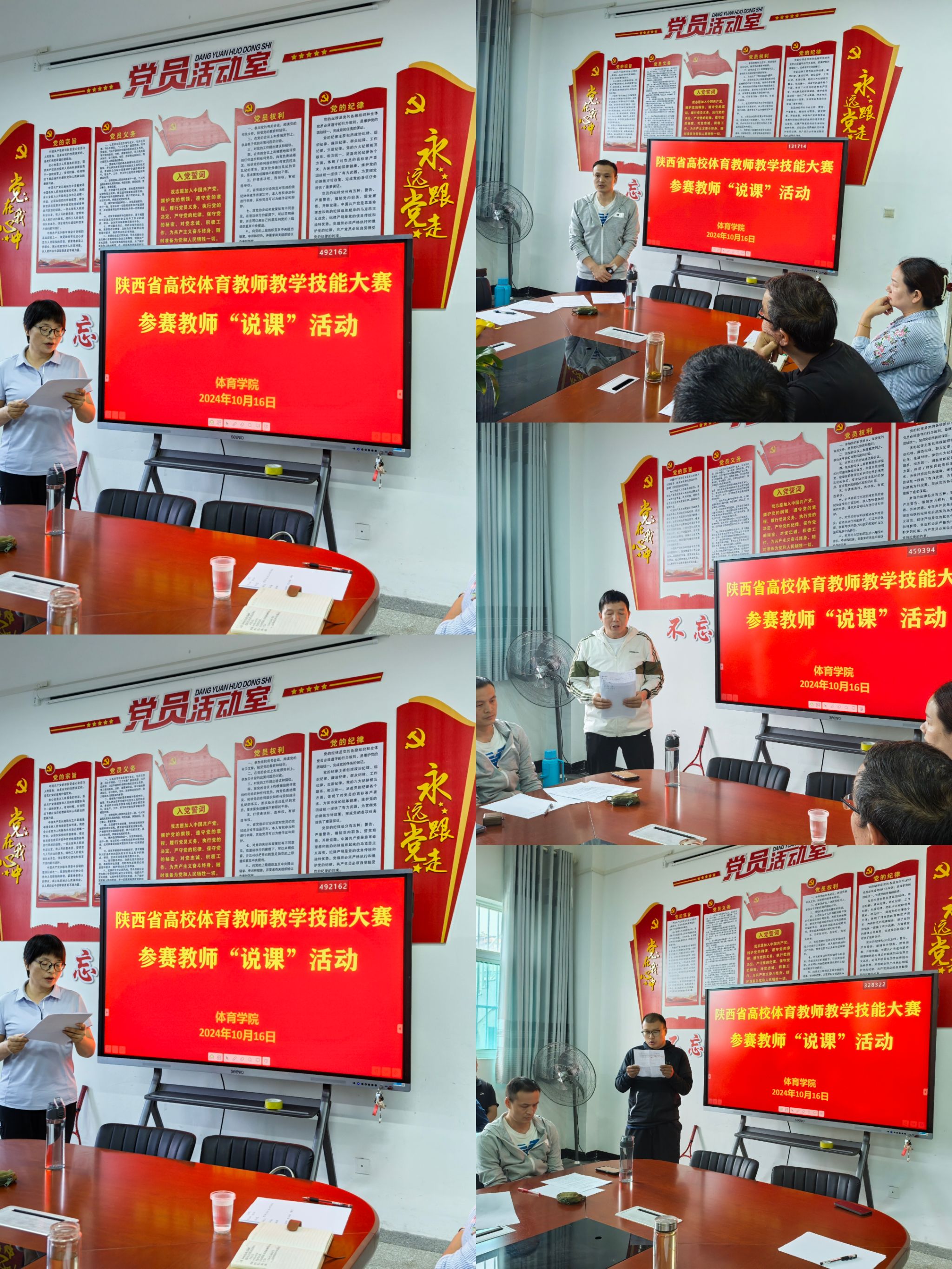 10月16日下午,正规滚球app平台官网为备战陕西省高校体育教师教学技能大赛,特举办“说课”磨课活动。活动邀请了文学与传媒学院的邸玲老师及正规滚球app平台官网吕仙利、冯德学、鲁宗成、李靖等多位专家进行现场指导。