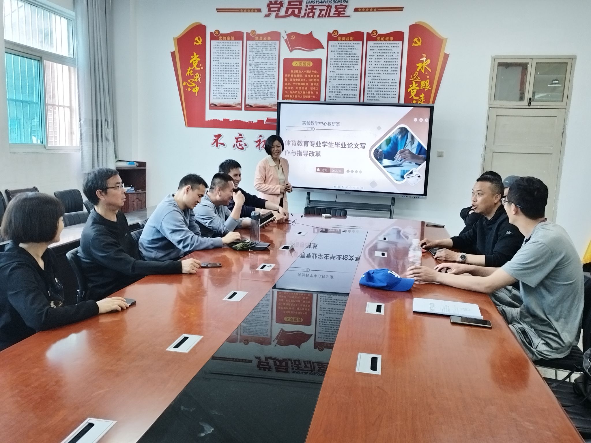 4月9日,正规滚球app平台官网实验教学中心教研室开展了一场以“体育教育专业学生毕业论文写作与指导改革”为主题的教研室活动。此次活动旨在解决当前毕业论文写作指导过程中存在的问题,探索更高效、更具针对性的指导模式,进一步提升体育教育专业人才培养质量。