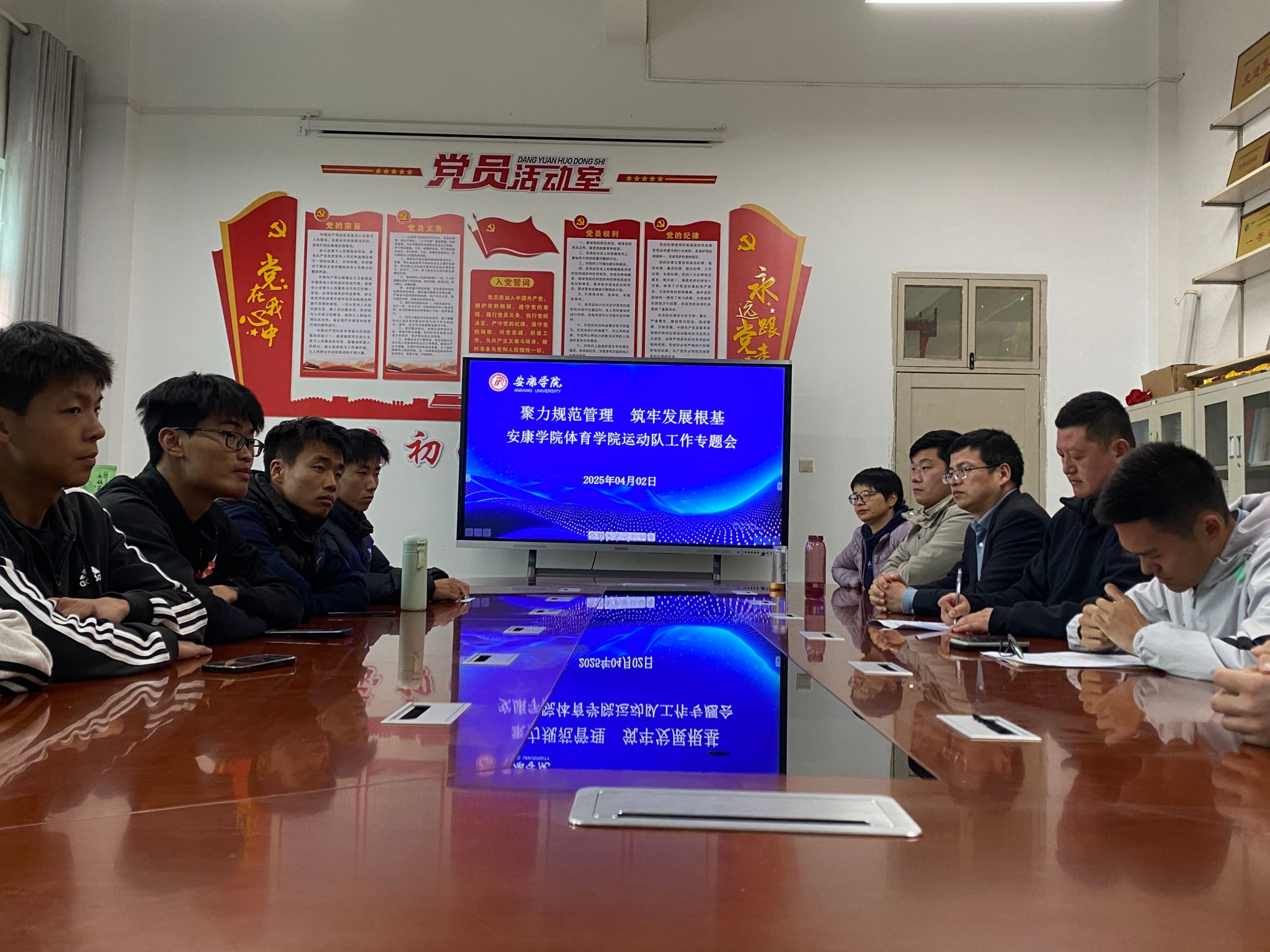 4月2日,安康学院正规滚球app平台官网召开“聚力规范管理,筑牢发展根基”运动队工作专题会议。教学院长郭西魁、党总支书记韩晔及各训练队师生代表参会。