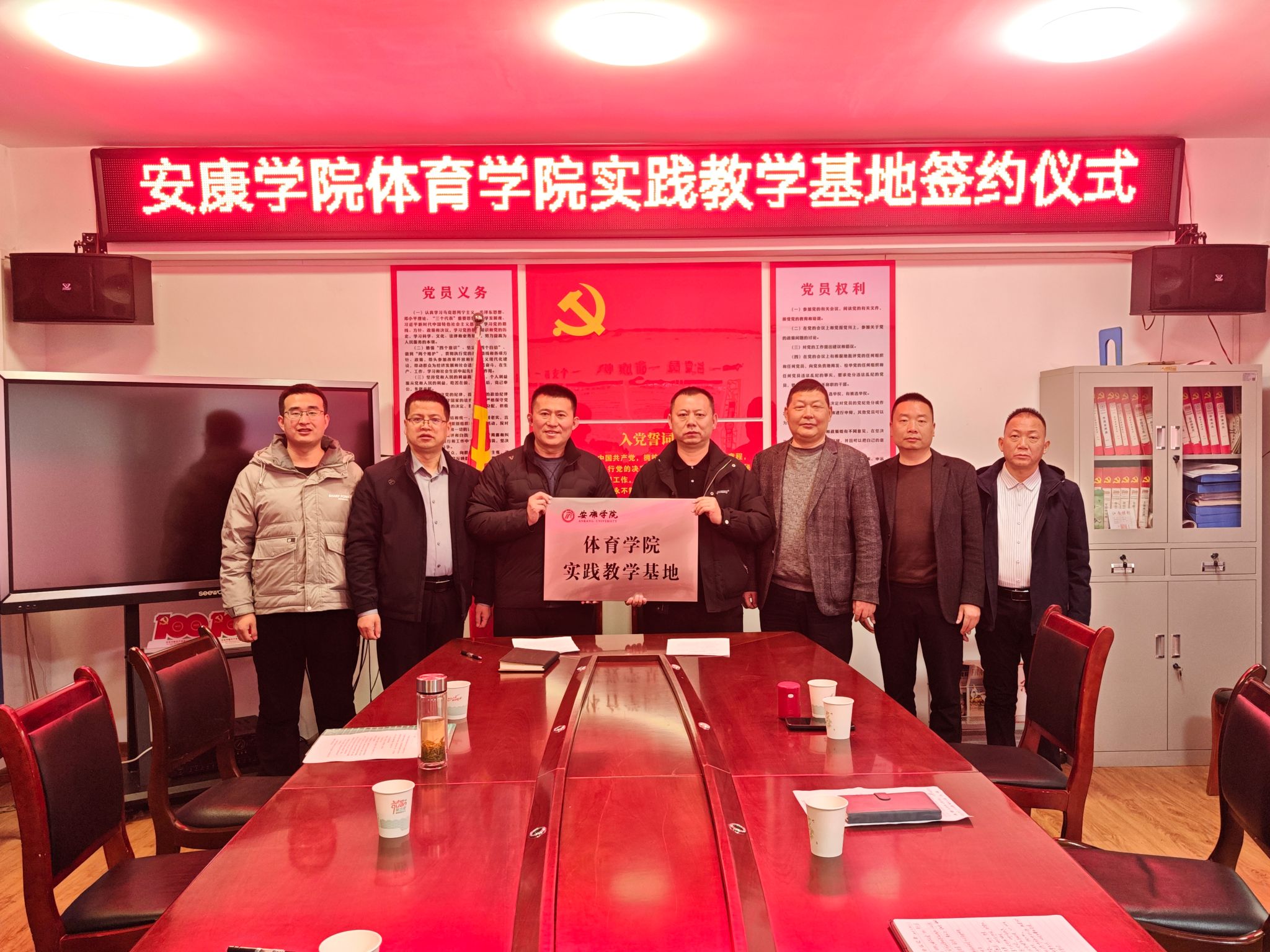 在汉滨区洪山九年制学校,双方代表进行了深入的交流座谈。与会领导分别介绍了两校在办学特色、专业建设及人才培养方面的基本情况,并就未来合作的方向和内容交换了意见。双方一致认为,建立实践教学基地是实现资源共享、优势互补的双赢举措,不仅能为安康学院的在校生提供宝贵的一线教学实践平台,也将为洪山九年制学校的体育教学注入新的活力。座谈会后,正规滚球app平台官网副院长郭西魁和洪山九年制学校校长吴作勇代表两校签订了实践教学基地协议书并挂牌。