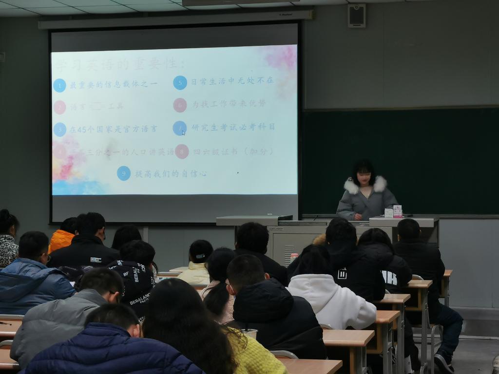张梦娇同学向大家介绍了学习英语的重要性,同时分享了学习英语的经验以及备考四六级的方法。张梦娇同学还现场示范了巧记英语单词的小妙招,生动形象,博得同学们阵阵掌声。