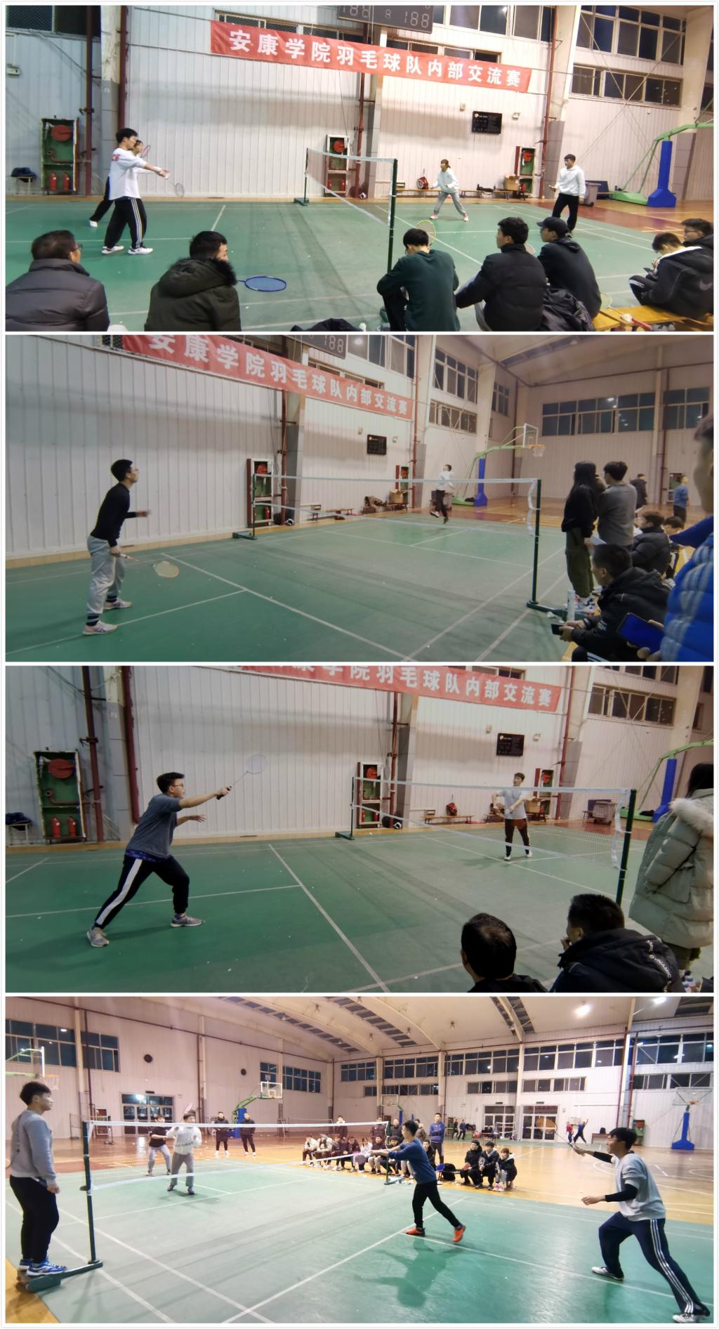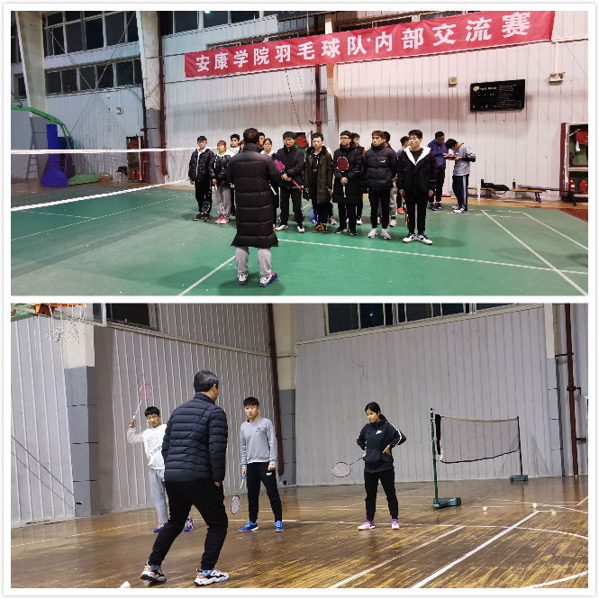 12月29日晚,安康学院大学生羽毛球队内部交流赛决赛在体育馆二楼开打。正规滚球app平台官网党总支书记高立平、学工办副主任王立、团总支书记康梦瑶、教练王培刚、彭涛、李善庚和其他队员一起观看了比赛。