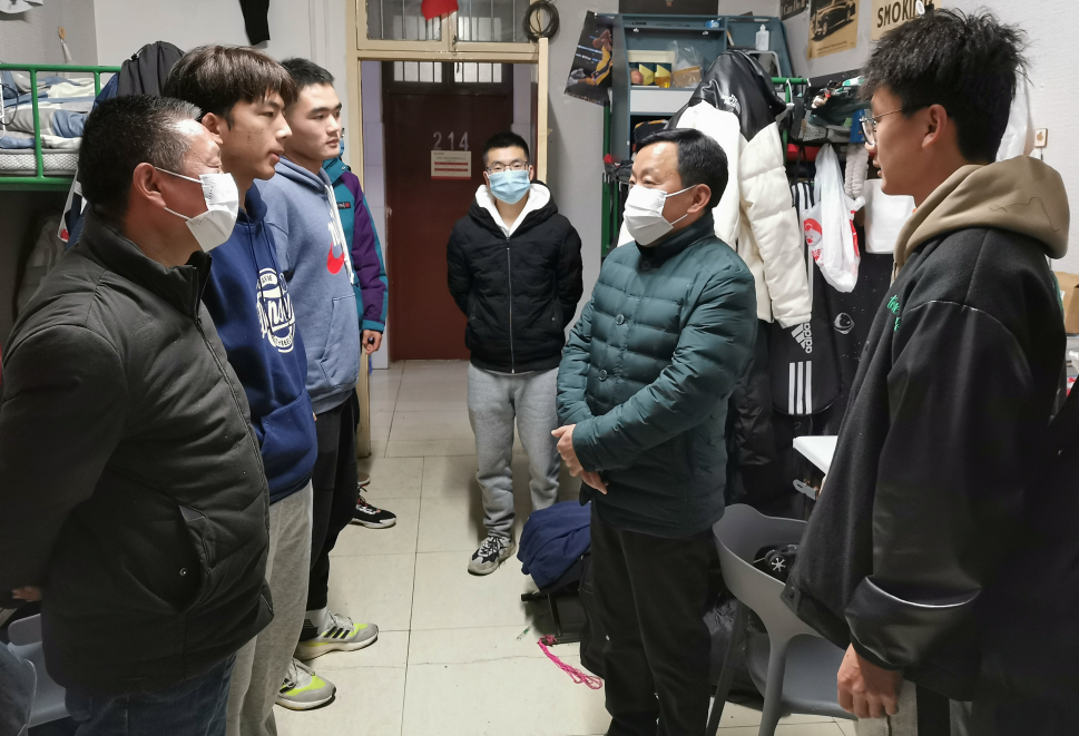 元月2日晚上,在学校疫情防控工作的关键时期,学校党委副书记、校长钟生海深入宿舍走访慰问正规滚球app平台官网学生,检查疫情防控工作的落实情况。正规滚球app平台官网党总支书记高立平、学工办副主任王立、辅导员康梦瑶陪同,走访看望学生并致以节日的问候。