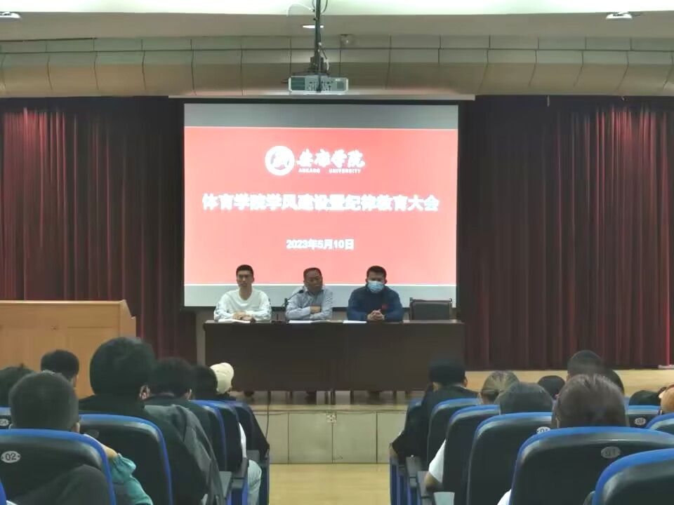 5月10日下午,滚球官网在1号教学楼6楼报告厅召开学风建设暨纪律教育大会。学院党总支书记高立平、副院长郭西魁、学工办副主任王立、团总支书记康梦瑶以及2021级、2022级全体学生参加了会议,会议由王立主持。