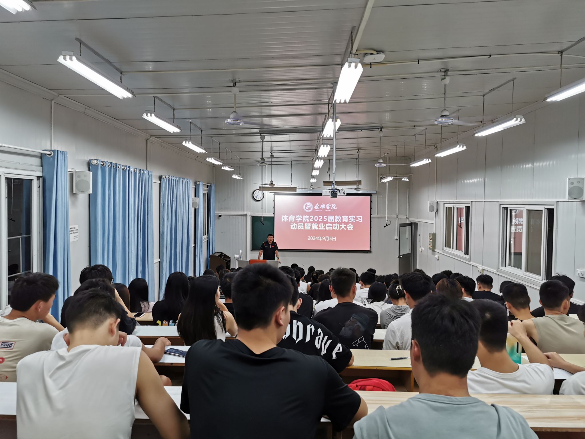 为不断提高体育教育专业学生综合素质和教学技能,促进高质量就业。9月5日晚,滚球官网在6405教室召开2025届毕业生教育实习动员暨就业启动大会。学院副院长郭西魁、大学体育教研室主任赵娇艳、学工办主任王立、2025届全体毕业生参加了会议,会议由王立主持。